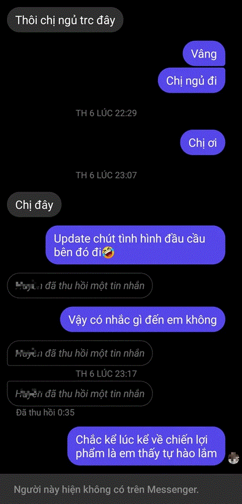 - Ui lại sao đây, lúc đấy vẫn nói chuyện với chị mà.