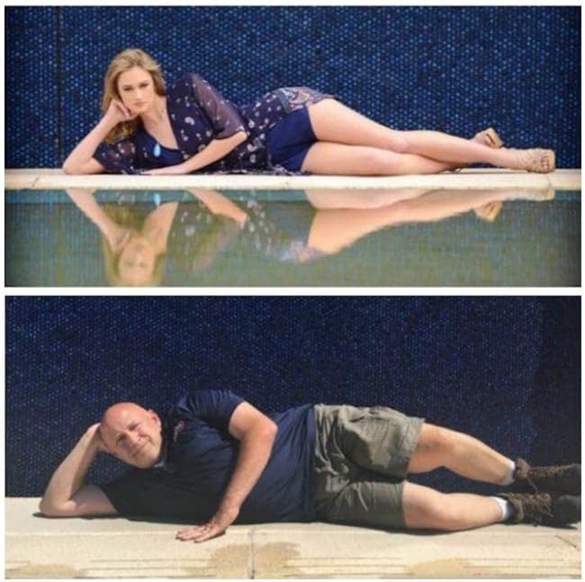 Ông bố nhại lại đủ mọi tư thế của cô con gái.