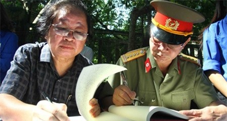 Người dân ghi sổ tang bày tỏ lòng tiếc thương với vị Đại tướng đức độ. |