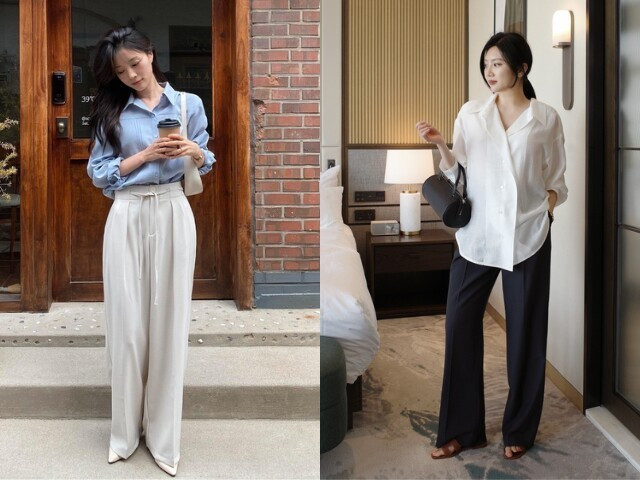 Áo sơ mi luôn là lựa chọn an toàn nhưng hiệu quả khi phối với quần ống suông. Thiết kế đơn giản, dễ mặc giúp tổng thể trông thanh lịch hơn. Chỉ cần sơ vin nhẹ hoặc xắn tay là đủ tạo điểm nhấn tinh tế, phù hợp nhiều hoàn cảnh.