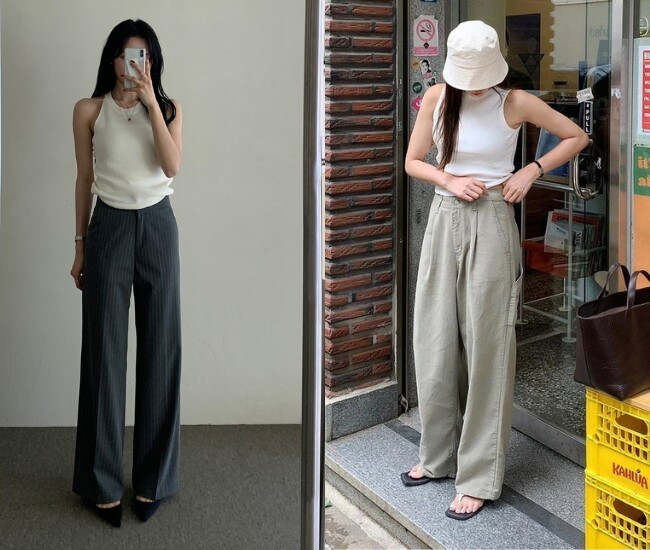 Khi kết hợp cùng quần ống suông, áo ba lỗ mang lại vẻ ngoài vừa năng động vừa tinh tế. Phụ nữ Pháp thường ưu tiên các gam màu trung tính như trắng, đen hoặc be để giữ tổng thể tối giản. Chỉ cần sơ vin gọn gàng, thêm một chiếc túi xách hoặc kính râm, bạn đã có ngay outfit mang đậm chất "effortless chic" - đẹp mà không cần cố gắng.