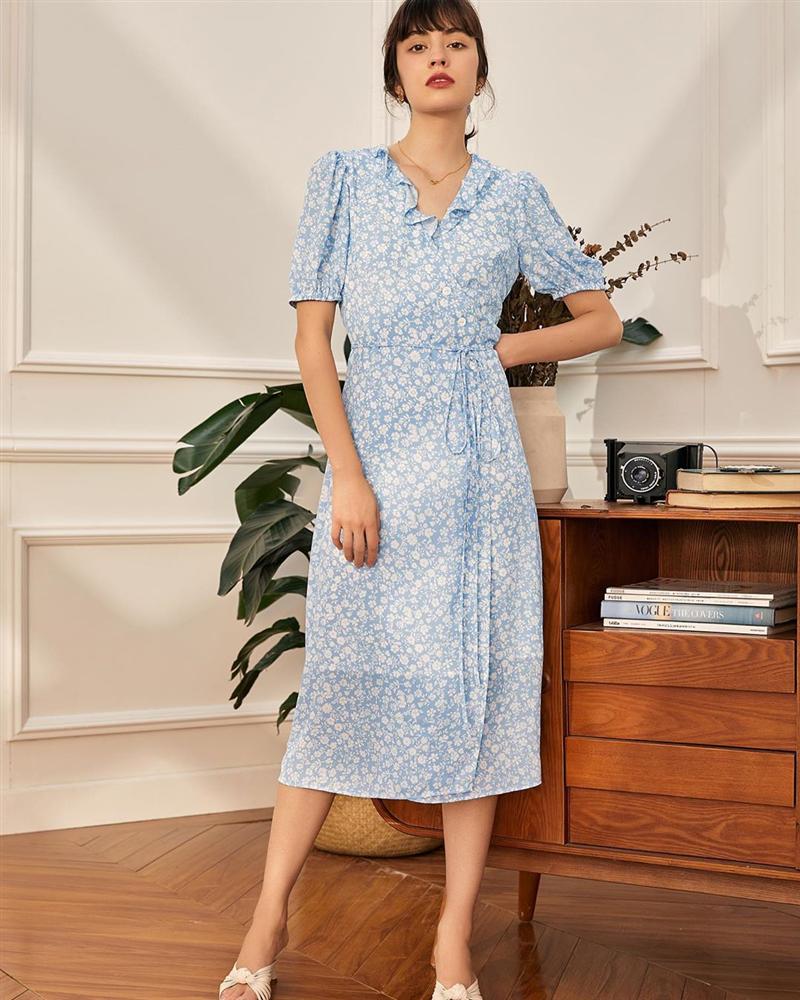 Chi tiết đinh của váy quấn chính là phần vạt xếp chồng lên nhau, tạo thành cổ chữ V và được nhấn nhá thêm phần dây buộc nơ hay khuy cài. Cũng nhờ đó, váy quấn cổ chữ V sẽ đem đến hiệu ứng gầy mảnh hơn cho vóc dáng, thậm chí còn có thể giúp các chị em "ăn gian" đến vài phân chiều cao. Và vì thế, không quá lời khi nói váy quấn là item dành cho mọi chị em, dù sở hữu vóc dáng gầy mảnh hay không.