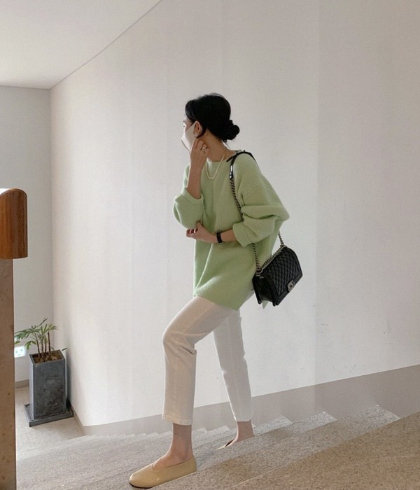 Quần jeans xanh, đen ai cũng có nhưng quần jeans màu trắng mới thực sự đỉnh cao. Quần jeans trắng sẽ tô điểm cho diện mạo trẻ trung của nàng, đảm bảo nàng sẽ không hề thấy thất vọng. Chiếc áo len màu cốm có gam màu tươi tắn cực kì hợp với quần trắng, nàng yêu thích có thể diện đi dạo phố hay du xuân đều được.