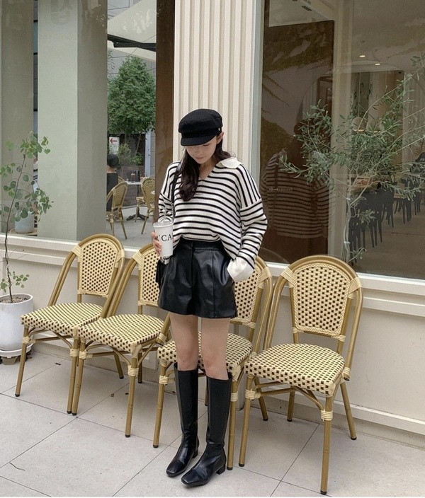 Một phụ kiện xinh xẻo khác cũng cực kì hợp khi diện với quần short lửng chính là mũ beret. Thiết kế cổ điển nhưng sang trọng của mũ beret phối cùng quần short lửng làm bằng da tạo nên bộ trang phục cá tính, sành điệu bất ngờ.