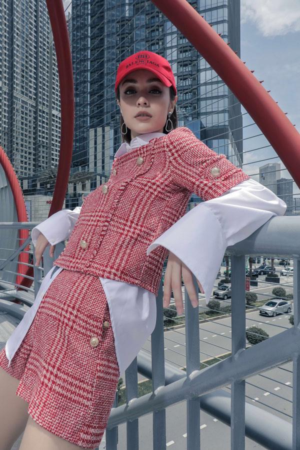 Mlee trở thành một mỹ nhân năng động, thời thượng chuẩn một fashionista quốc tế. Những thiết kế thách thức như thế này cũng không làm khó được cô.