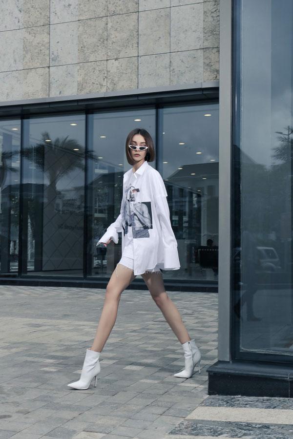 Mlee trưng dụng những item năng động, trẻ trung, cô nàng vẫn không quên khai thác đôi chân dài miên man trong những bộ cánh.
