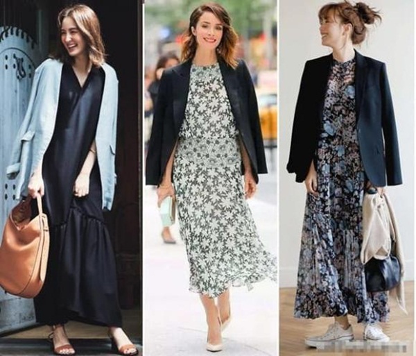Những chiếc váy mùa hè vẫn có thể mặc được vào mùa xuân, rất dễ phối với một chiếc áo blazer để làm nổi bật khí chất. Bạn không cần phải đau đầu lựa chọn trang phục nhiều, chỉ cần lên đồ nhanh chóng như vậy là có thể ra ngoài dễ dàng rồi.
