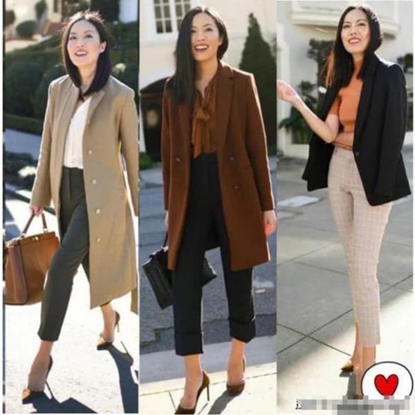 Không chỉ các cô gái trẻ mà các chị em tuổi trung niên sáng ra đi làm cũng thường lo lắng không biết nên ăn mặc như thế nào cho hợp mùa. Thời tiết buổi sáng se lạnh, buổi tối mát mẻ, nhưng giữa trưa vẫn có thể nóng nực, mồ hôi nhễ nhại. Tuy nhiên, với bộ đôi quần âu + áo sơ mi và mang thêm chiếc áo khoác ngoài nhẹ là bạn có thể giải quyết mọi vấn đề. Style này đơn giản, không cầu kì nhưng trông thật dễ chịu, thoải mái và thanh lịch.