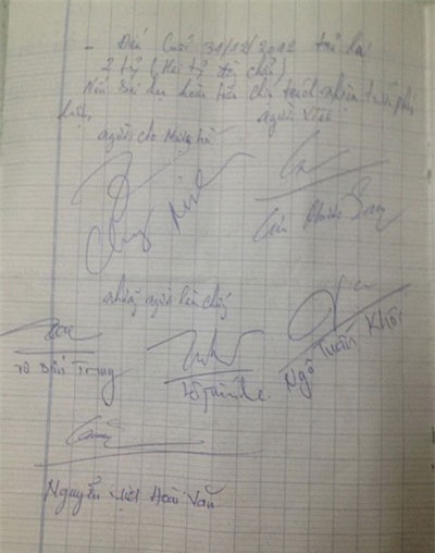 ![]() ![]() Nội dung lá đơn viết tay của "ông bầu" Phước Sang có 7 chữ ký của nhóm bạn thân thiết (trong đó có diễn viên Lê Tuấn Anh) hứa trả nợ dứt điểm trước tháng 12.2012 mà Chung Minh đang giữ. |