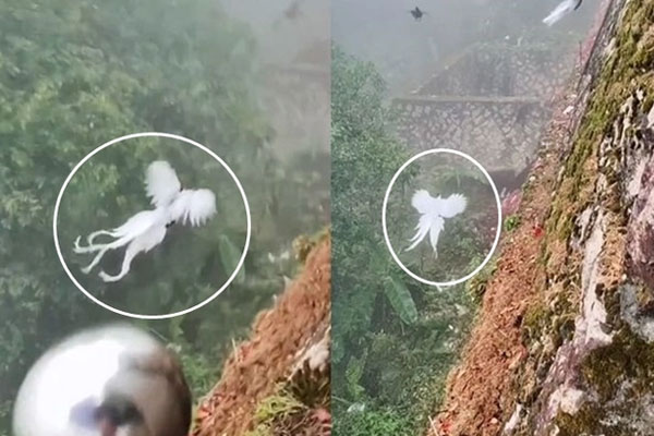 Vài ngày trước, một du khách đang leo núi ở Chương Châu, Phúc Kiến, Trung Quốc thì bất ngờ nhìn thấy một con chim màu trắng tuyệt đẹp rất giống hình dung của mọi người về phượng hoàng đang đập cánh bay vút đi trong thung lũng.