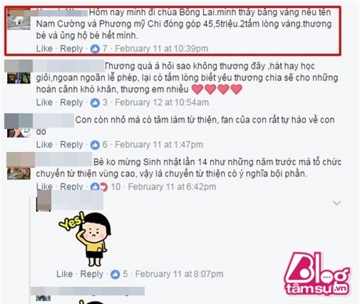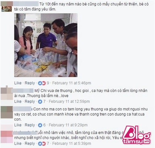 Dù còn nhỏ mà đã kiếm được rất nhiều tiền như vậy, ngoài chăm lo cho bản thân và gia đình thì Cô bé dân ca cũng hay giúp đỡ những người có hoàn cảnh khó khăn, thường xuyên đi từ thiện. Hành động này của 1 cô bé 14 tuổi được đánh giá rất cao và khiến nhiều người phải ngưỡng mộ và nể phục. Cụ thể, trong một chuyến đi từ thiện mới đây, có người đã tiết lộ số tiền mà Phương Mỹ Chi và ca sĩ Nam Cường đã ủng hộ tại chùa là 45,5 triệu đồng – một con số không phải là nhỏ. Và tất nhiên, đây chỉ là một trong vô vàn chương trình từ thiện mà Phương Mỹ Chi đã làm. Như vậy có thể thấy, kiếm được tiền nhiều nhưng cô cũng san sẻ cho những người khó khăn số tiền khá lớn.