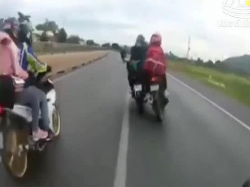 Clip: Phượt thủ vượt ẩu, tông 2 người đi xe máy ngã văng xuống đường rồi bỏ chạy