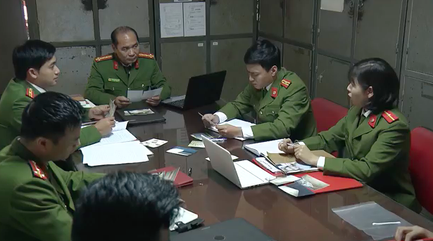Các chiến sĩ công an họp bàn điều tra vụ án.