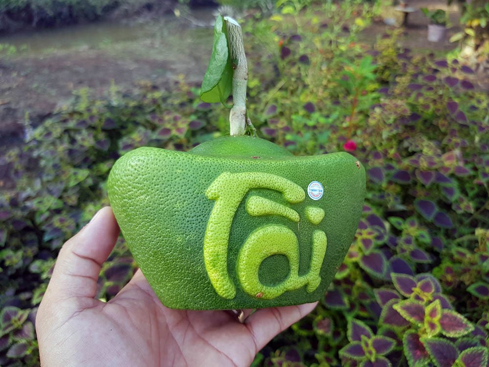 "Bưởi da xanh rất khó tạo hình và từ trước đến nay chưa ai tạo hình thành công ở loại trái cây này. Tôi mất nhiều lần thử nghiệm và tốn rất nhiều thời gian mới thành công”, anh Tâm nói. Để có sản phẩm độc lạ này, anh phải tự thiết kế ra một loại khuôn với lực nén. Ngoài loại bưởi thỏi vàng in chữ Tài - Lộc, anh Tâm còn có sản phẩm bưởi vuông.