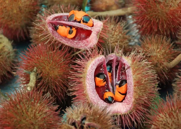 Nhìn bề ngoài rất giống chôm chôm nhưng đây thực chất lại là một loại quả rừng. Phần nhân của chúng có màu đỏ như máu và lẫn nhiều hạt lớn màu cam-đen. Đây là quả của cây sô loan Trung Quốc, hay còn gọi là cây hầu hoan hỉ.