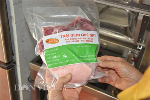Cận cảnh một sản phẩm thịt lợn được đóng gói, hút chân không hoàn chỉnh trước khi đưa đến các chuỗi của hàng sạch trong thành phố bán cho khách hàng Thủ đô.