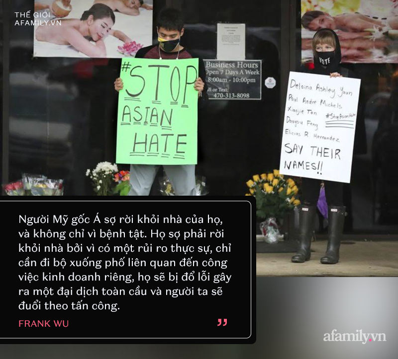 Frank Wu, hiệu trưởng của trường đại học Queens thuộc Đại học thành phố New York, người chuyên nghiên cứu chống phân biệt đối xử với cộng đồng người gốc Á ở Mỹ nhận định: “Người Mỹ gốc Á sợ rời khỏi nhà của họ, và không chỉ vì bệnh tật. Họ sợ phải rời khỏi nhà bởi vì có một rủi ro thực sự, chỉ cần đi bộ xuống phố liên quan đến công việc kinh doanh riêng, họ sẽ bị đổ lỗi gây ra một đại dịch toàn cầu và người ta sẽ đuổi theo tấn công".