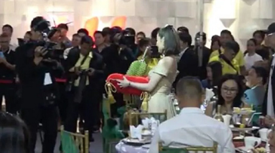 Quả sầu riêng trị giá 48.000 USD được mang ra trong cuộc đấu giá ở Thái Lan. Ảnh CNA