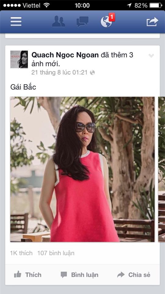 Một hình ảnh của Phượng Channel được Quách Ngọc Ngoan công khai đưa lên trang cá nhân.