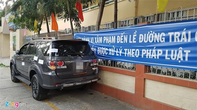 | Chiếc xe của Quách Tuấn Du bị xử phạt vì đỗ xe lấn chiếm. Ảnh: Hải An. |