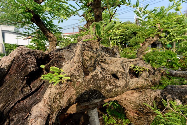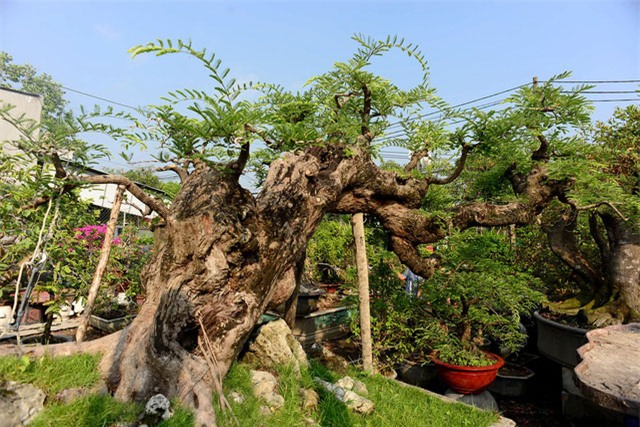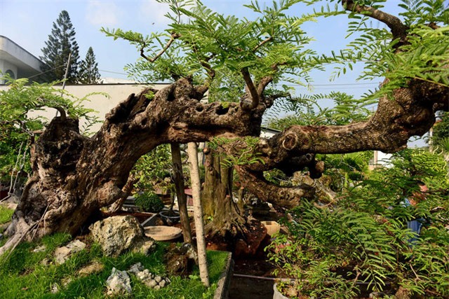 Cây me dáng "ba đầu rồng" hết sức "quái" ở trong vườn cây cảnh của ông Trịnh Công Minh đang được chăm sóc tại vườn cây cảnh ngã tư đường Bà Triệu - Song Hành Quốc lộ 22, thị trấn Hóc Môn, TPHCM