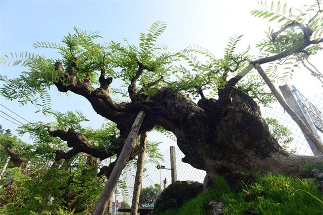 Cây me được trồng trong một chiếc chậu lớn vững chãi, chiều cao nguyên chậu trên 3,2m; thân cây sần sùi với hoành lớn hơn 200cm; chiều dài khoảng 4m và chiều rộng tán cây tầm 2,5m.