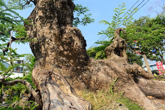 Đến gần quan sát mới thấy hết được độ quái hiếm có của cây me. Ba nhánh chính với các u nần nổi lên như ba đầu rồng trong tư thế muốn vút bay lên trời thể hiện khí chất dũng mãnh, quyết đoán, không bỏ cuộc.