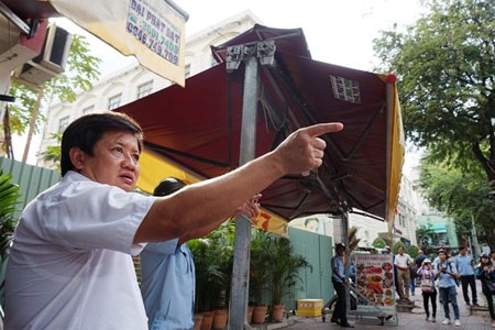 | Chiều 24/2, Phó chủ tịch UBND quận 1 (TP.HCM) Đoàn Ngọc Hải tiếp tục dẫn đầu đoàn kiểm tra gồm nhiều lực lượng đi “đòi” lại vỉa hè cho người đi bộ trên các tuyến đường trung tâm TP. |
