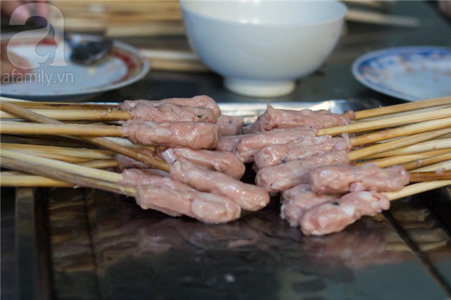 Nem lụi của quán làm mới liên tục, khi ăn có vị dai, ngọt của thịt tươi.