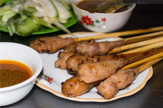 phải đổ bằng lửa than, rau ăn kèm có đủ rau sống, đồ chua, nem lụi phải