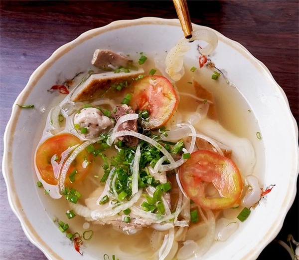 bún cá sứa ở đây có nước rất trong, với sự kết hợp của nhiều màu sắc