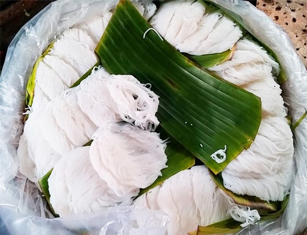 như lòng bàn tay và mỏng mảnh tựa chiếc lá, sợi bún mỏng. Bún lá làm kỳ