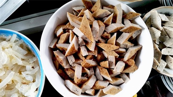 chả cá hấp, người bán phải quết tay khối cá xay trong vòng một tiếng