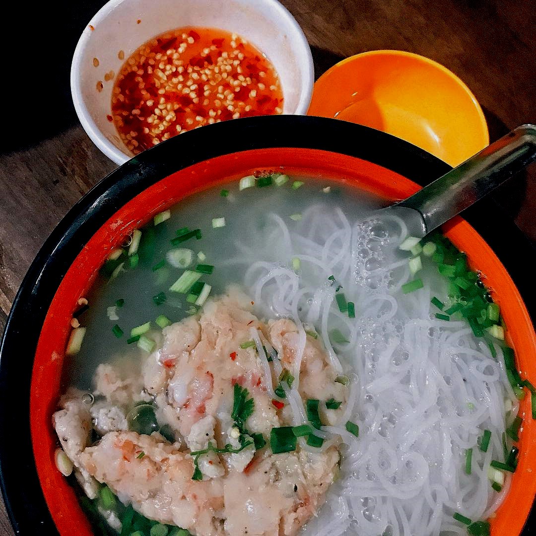Mùi hành tiêu ngát thơm, sợi bún mềm dai còn đọng lại chút béo béo của bột gạo. Đặc sắc nhất là nước dùng, chẳng phải đậm đà, cầu kì gia vị mà bạn sẽ tận hưởng cái ngọt thanh từ các nguyên liệu dung hòa lại. Gắp miếng chả cả giòn tươi hay con mực dai dai sẽ tiếp thêm nét tinh tế từ biển cả cho tô bún hấp dẫn bội phần.