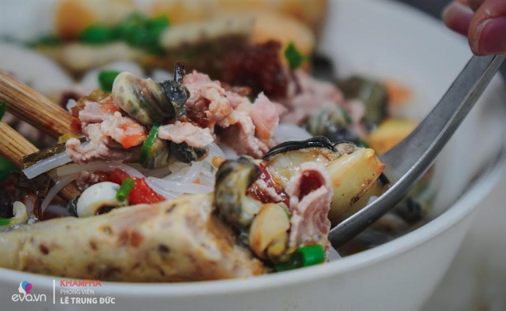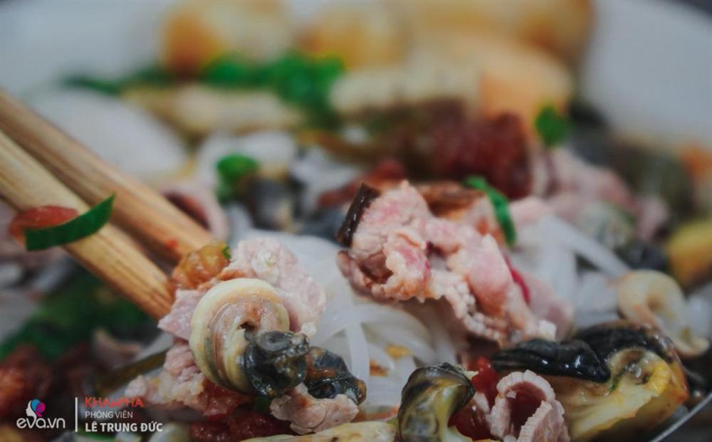 Chị Trang cho biết, quán nhà mình mở từ sáng sớm và đóng cửa và 2h chiều. Gia đình chị sử dụng nguyên liệu tươi mỗi ngày, hết đến đâu làm đến đó mà không để lưu cữu từ từng quả cà chua, từng sợi hành đến từng con ốc, rồi tóp mỡ.
