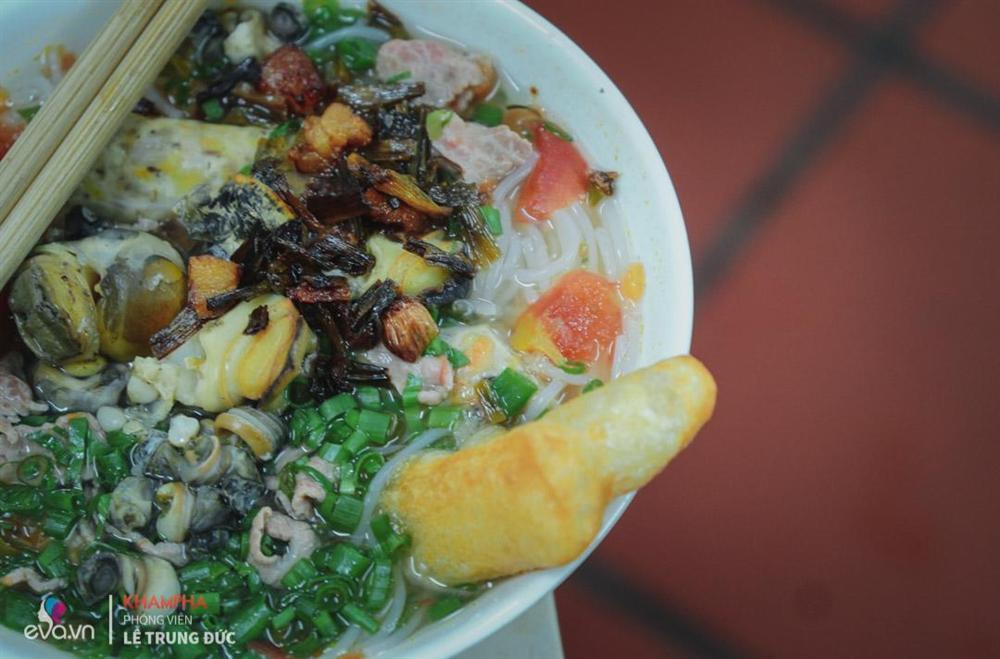 Đặc biệt, từng miếng tóp mỡ vàng sậm, nho nhỏ, dù đã được dầm trong nước canh nóng hổi bao lâu cũng vẫn giữ được cái vị giòn giòn, thơm phức, béo ngậy.