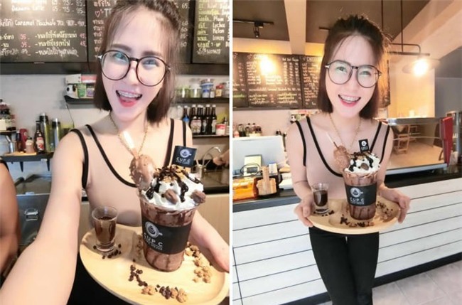 Cô gái này có lẽ chính là nhân viên nổi tiếng và được quan tâm nhất tại Cup C Cafe do vòng 1 quyến rũ và gương mặt xinh xắn luôn nở nụ cười tươi.
