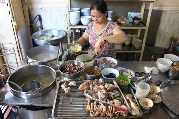 Danh sách các món ăn kèm cháo tại đây khá phong phú. Từ khoanh giò heo hầm mềm, đùi, cánh gà luộc....