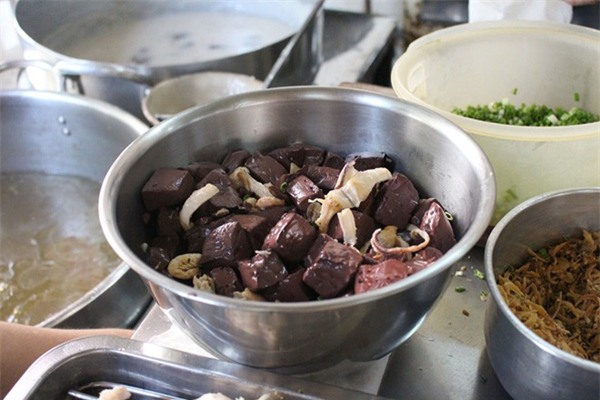 Người bán cho vào tô ít gừng tươi để khắc chế mùi và tăng độ ấm cho món ăn.