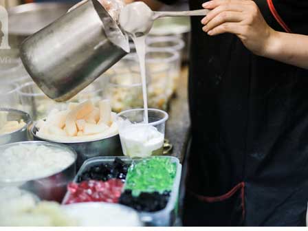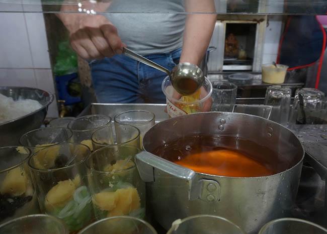 Hết lượt khách này đến lượt khách khác ghé ăn, chỗ ngồi không rộng nhưng khách ở đây thường ăn nhanh, không ngồi lâu. Từ phục vụ cho đến người múc chè, người tính tiền đều làm việc nhanh nhẹn. Mỗi ngày, tiệm bán hơn nghìn ly cho du khách lẫn người địa phương.