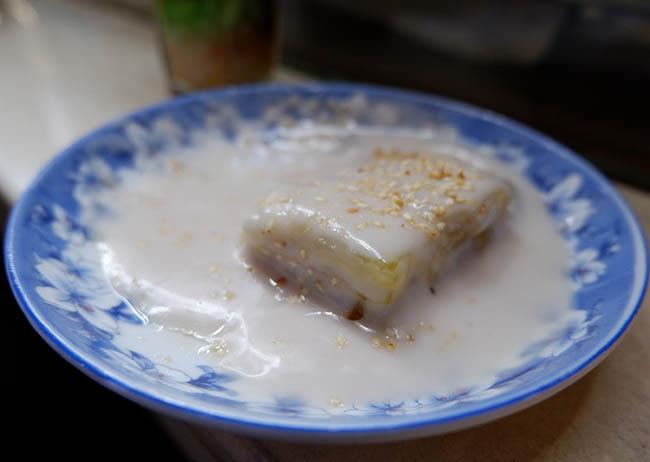 Phần bánh chuối chan thêm nước cốt dừa thơm béo, rắc ít mè rang bùi bùi nữa là đúng chuẩn. Giá một phần 27.000 đồng.