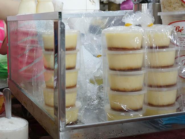 Bên cạnh đó, bánh flan là một trong những món mua về được ưa chuộng tại đây. Giá một phần là 20.000 đồng, cao hơn so với các quán chè kiểu Sài Gòn khác nhưng vị "nhà làm" khá ổn, chiếm được cảm tình của du khách.