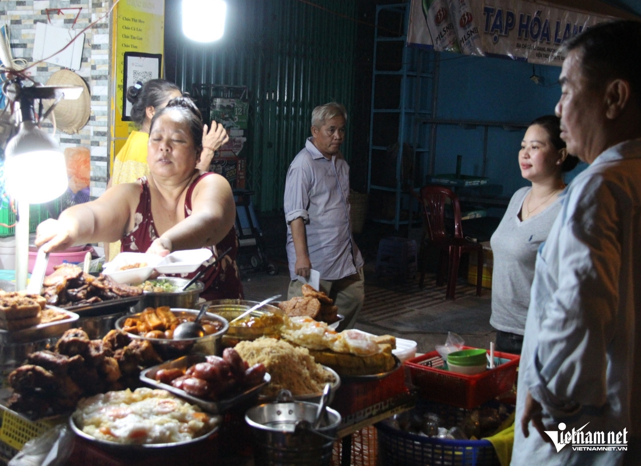Cuối ngày, đoạn vỉa hè đường Cô Giang (quận 1, TPHCM) đối diện đình Nhơn Hòa lại đông người. Họ ghé vào quán cơm sườn không bảng hiệu của vợ chồng ông Trần Tấn Phong (54 tuổi) và bà Nguyễn Ngọc Thanh (53 tuổi).