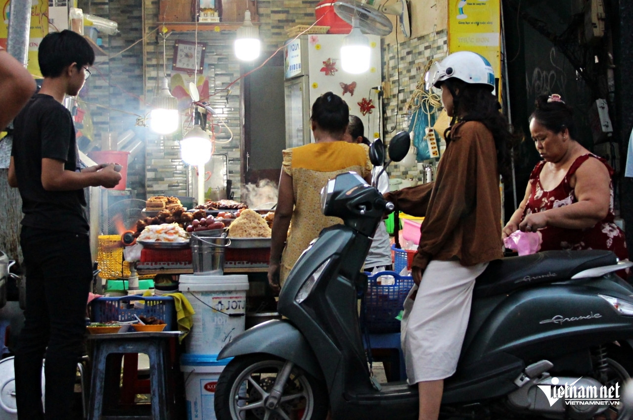 Phía bên kia đường, khách ngồi ăn tại chỗ cũng dần đông đúc, liên tục gọi món. 5 nhân viên của quán ăn tất bật chuẩn bị cơm cho khách không kịp nghỉ tay.