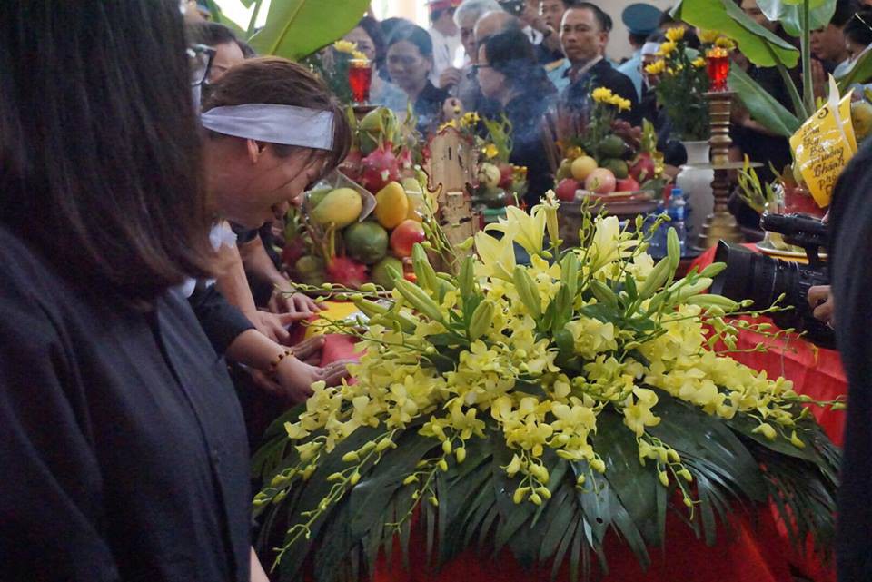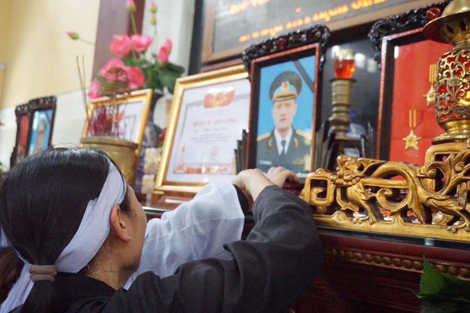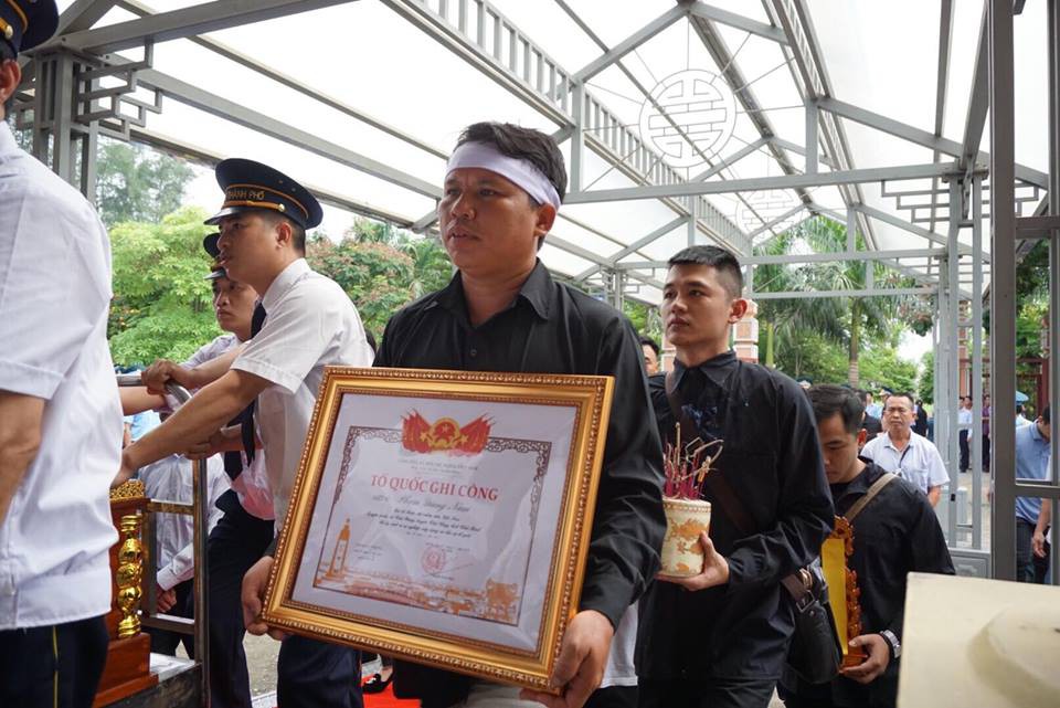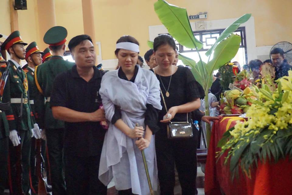 Người vợ của chiến sĩ Phạm Giang Nam không thể đứng vững trước linh cữu chồng