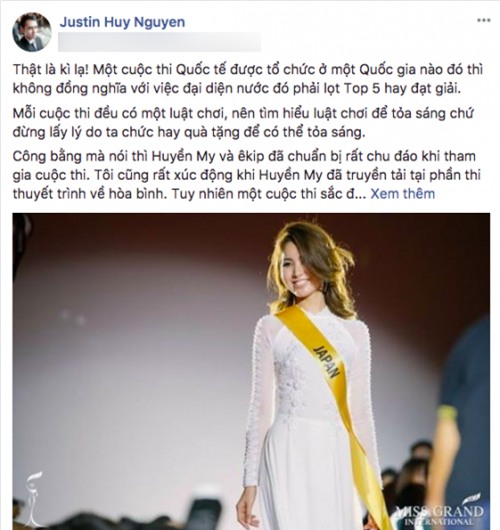 Sau đó ít phút, người này đã chủ động đổi dòng trạng thái từ “búp bê bị hư” sang “búp bê Mỳ Mỳ”. Ngay sau đó, người đàn ông này cũng có những chia sẻ về lý do vì sao Huyền My không lọt vào top 5 theo quan điểm của bản thân - người từng có kinh nghiệm đưa các thí sinh Việt Nam “chinh chiến” quốc tế.