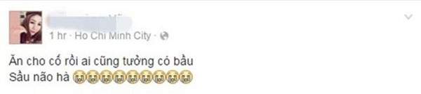 Tuy nhiên, ngay sau khi thông tin này rộ lên, trợ lý của Hari Won đã ngay lập tức lên tiếng về chuyện này. Người quản lý của Hari đùa vui trên trang cá nhân rằng: “Ăn cho cố rồi ai cũng tưởng có bầu. Sầu não hà”. Mặc dù không nêu cụ thể đích danh song hầu hết mọi người đều đoán được status này đang nói về nghi vấn Hari Won mang thai. Và không cần phải lời đính chính, đây được xem như chính là phủ nhận về tin đồn có bầu của nữ ca sĩ xinh đẹp.