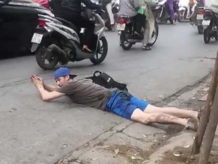 Thanh niên ngoại quốc nằm ra lòng đường "tập bơi" sau khi thử điếu cày ở quán nước vỉa hè