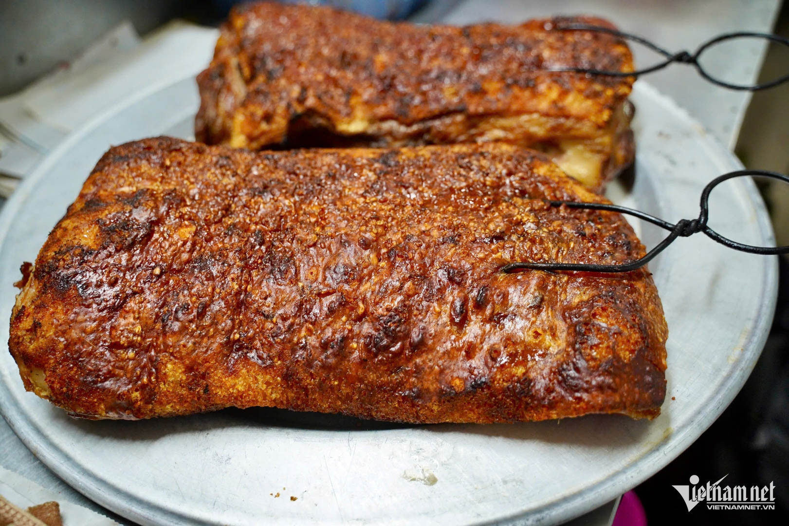 Thịt lợn được nướng từng tảng lớn. Ảnh: Kim Ngân