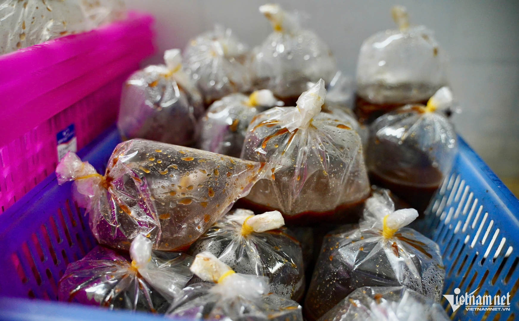 Phần nước sốt được đóng thành từng túi nhỏ. Ảnh: Kim Ngân